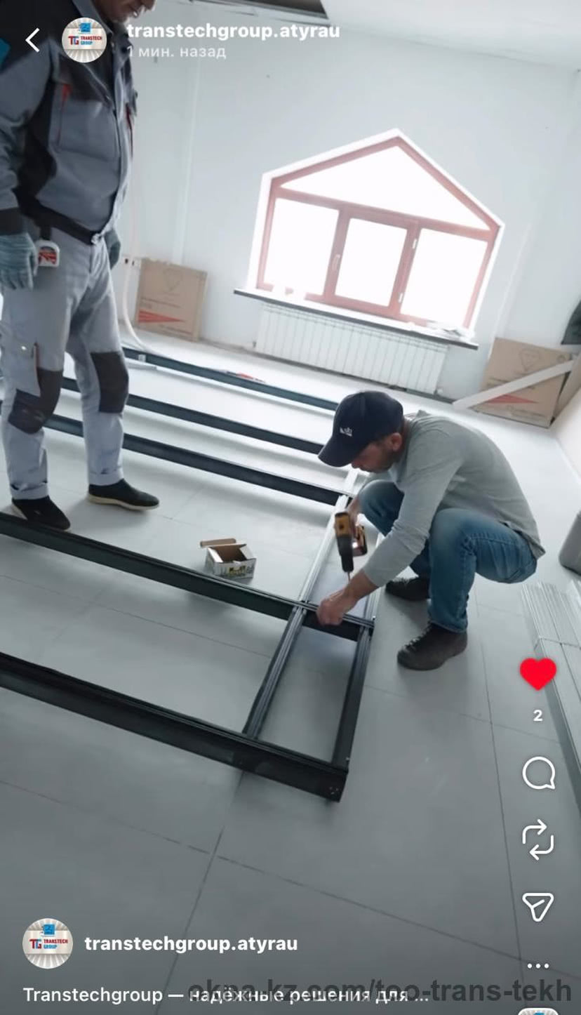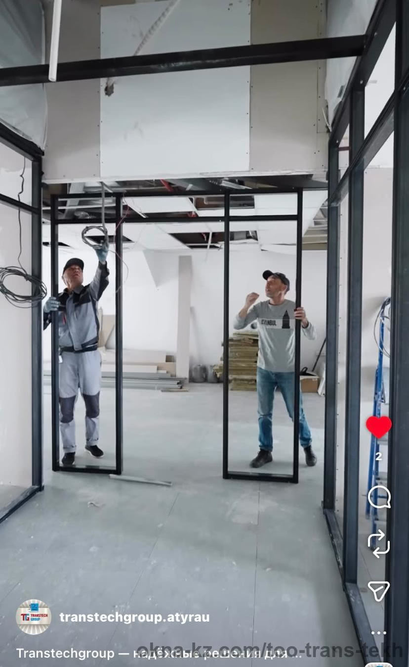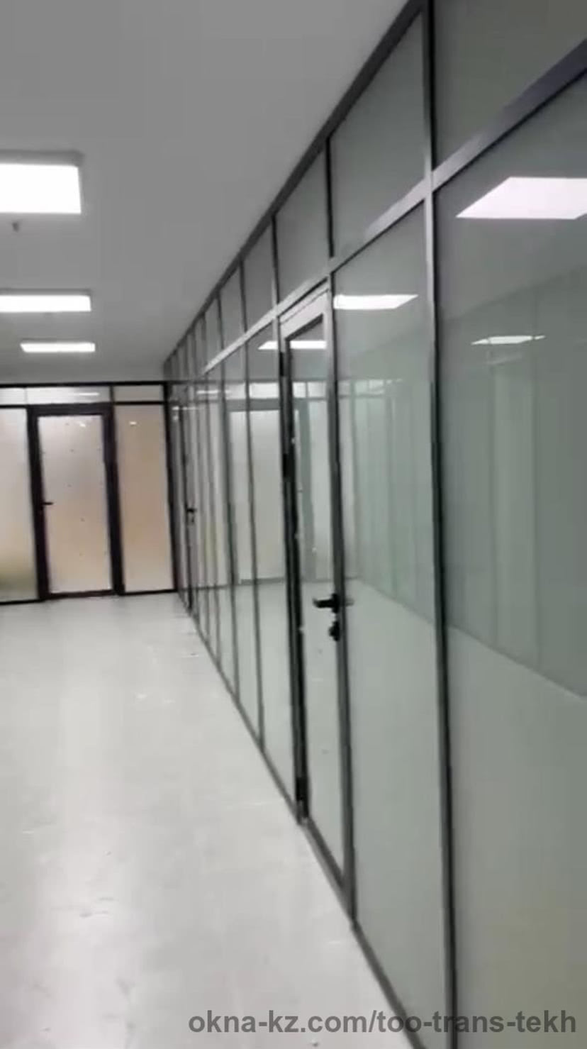 Алюминиевые перегородки с матовым стеклом в одну нить.